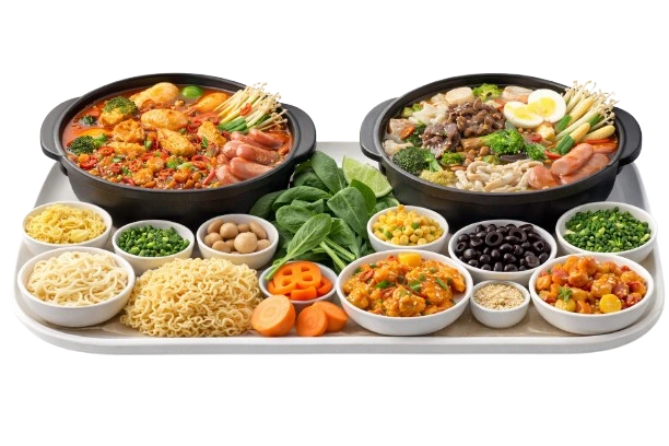A hearty, flavorful, and customizable Asian-style meal served hot with broth, proteins, vegetables, and noodles, perfect for cozy cravings.