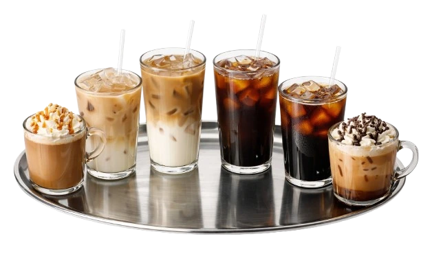 Chilled coffee beverages featuring espresso blends, cream, milk, and syrups are smooth, bold, and refreshing.