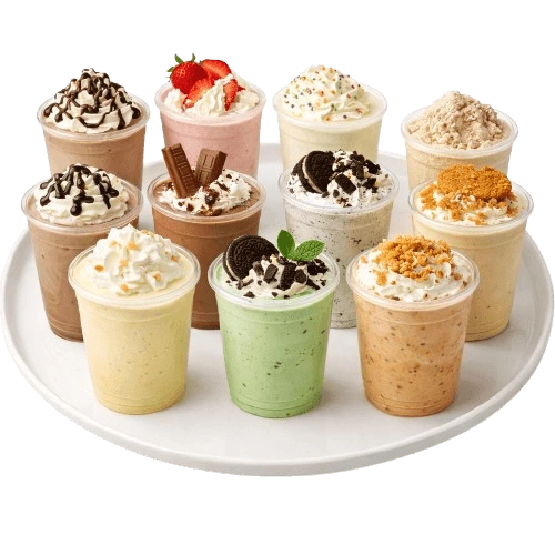 Rich and creamy shakes made with ice cream and premium toppings for a sweet, indulgent treat.